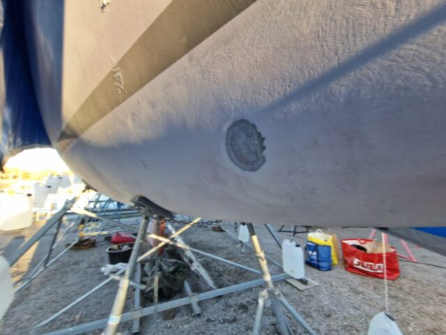 Nedan några bilder från gammal bottenfärg till ren gealcoat.