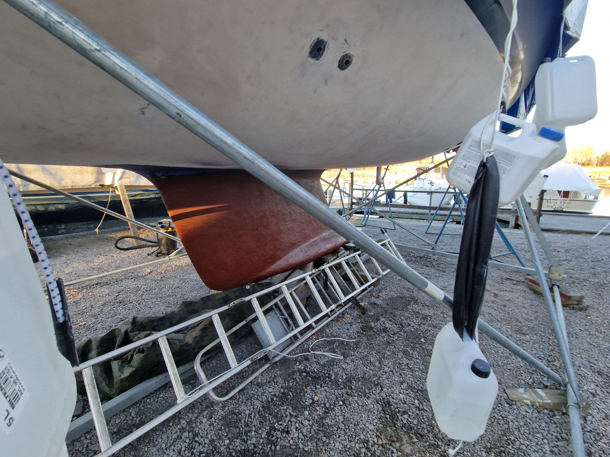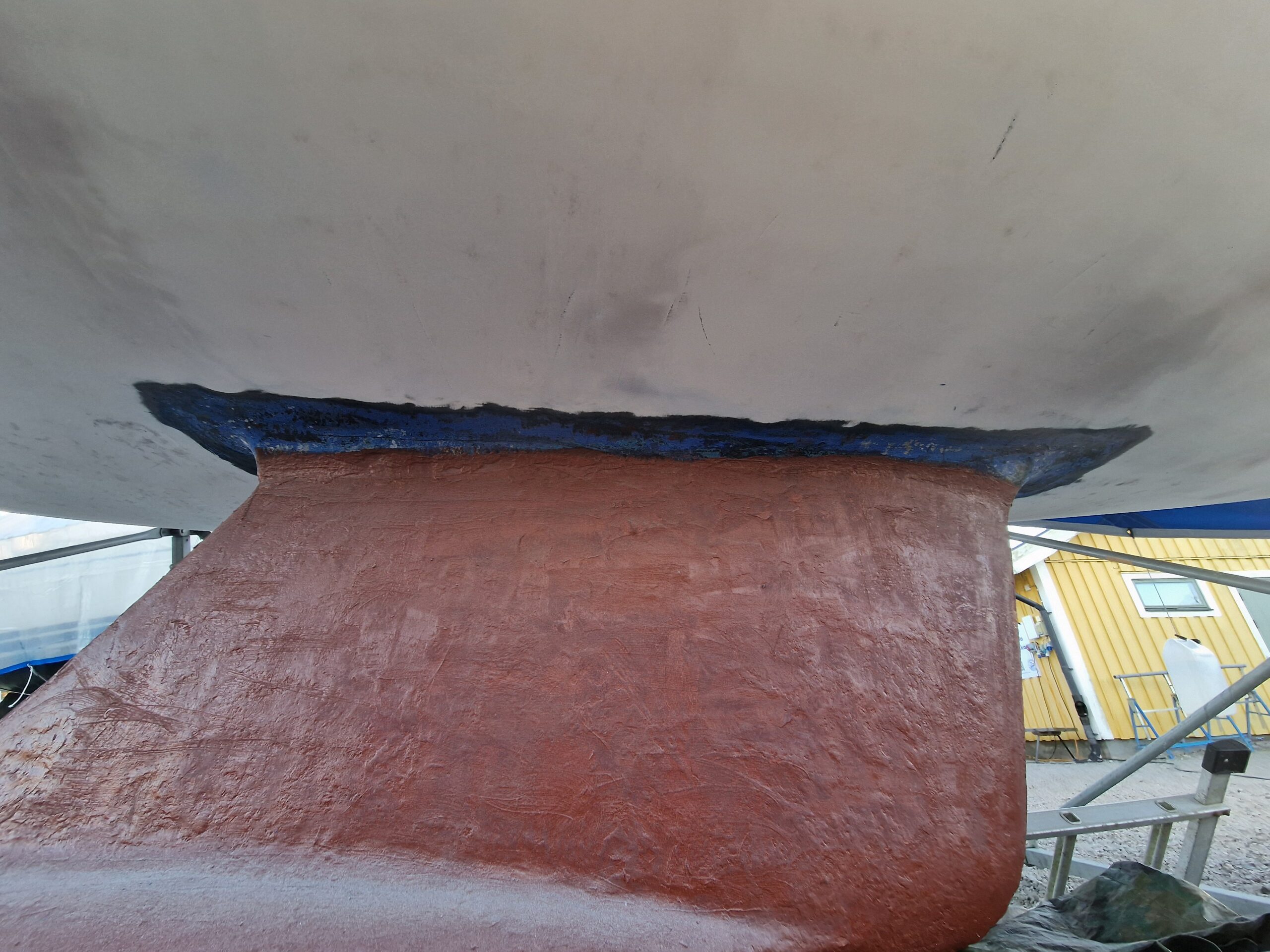Planen just nu är att köra med International Gelshield 200 som epoxybarriär på skrovet och International Trilux som bottenfärg. Båda är godkända för både ost- och västkusten, vilket känns tryggt.