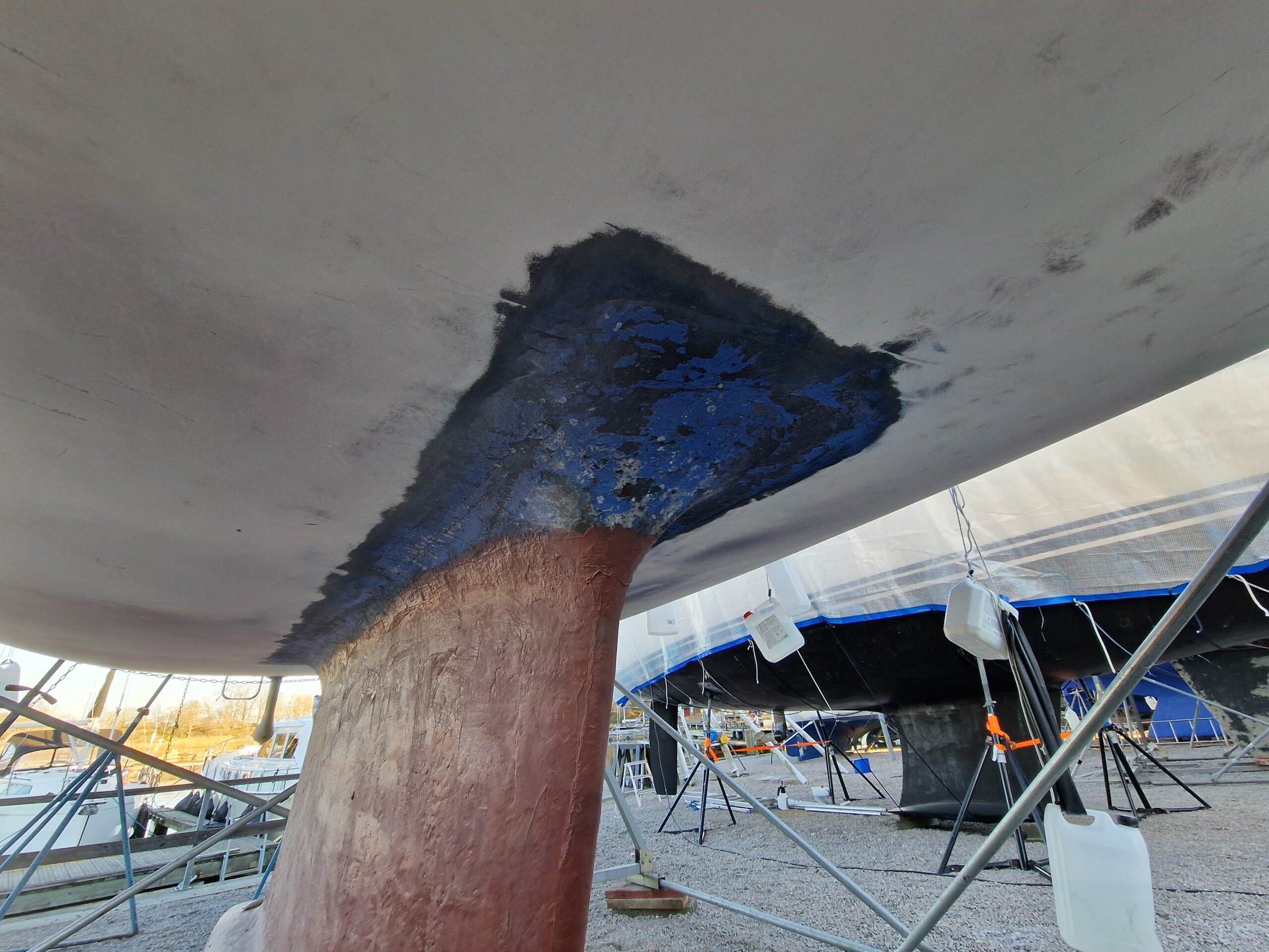 Samtidigt vill vi inte stänga några dörrar – epoxi finns med som ett alternativ framöver, men då handlar det om ett annat system än det vi använder på plastskrovet.