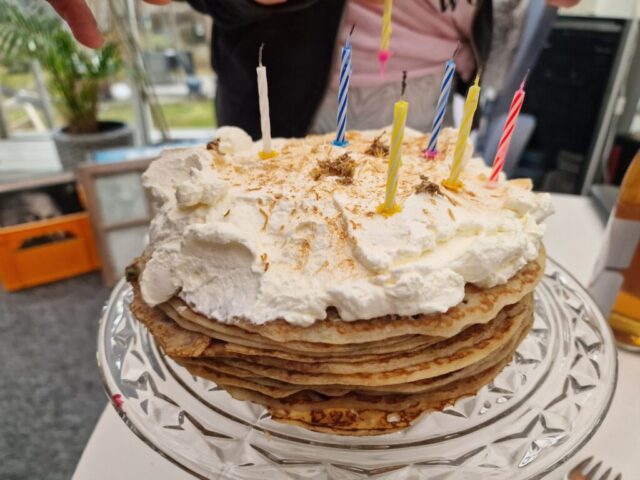 Dagen började på bästa sätt med pannkakstårta i Växjö.
