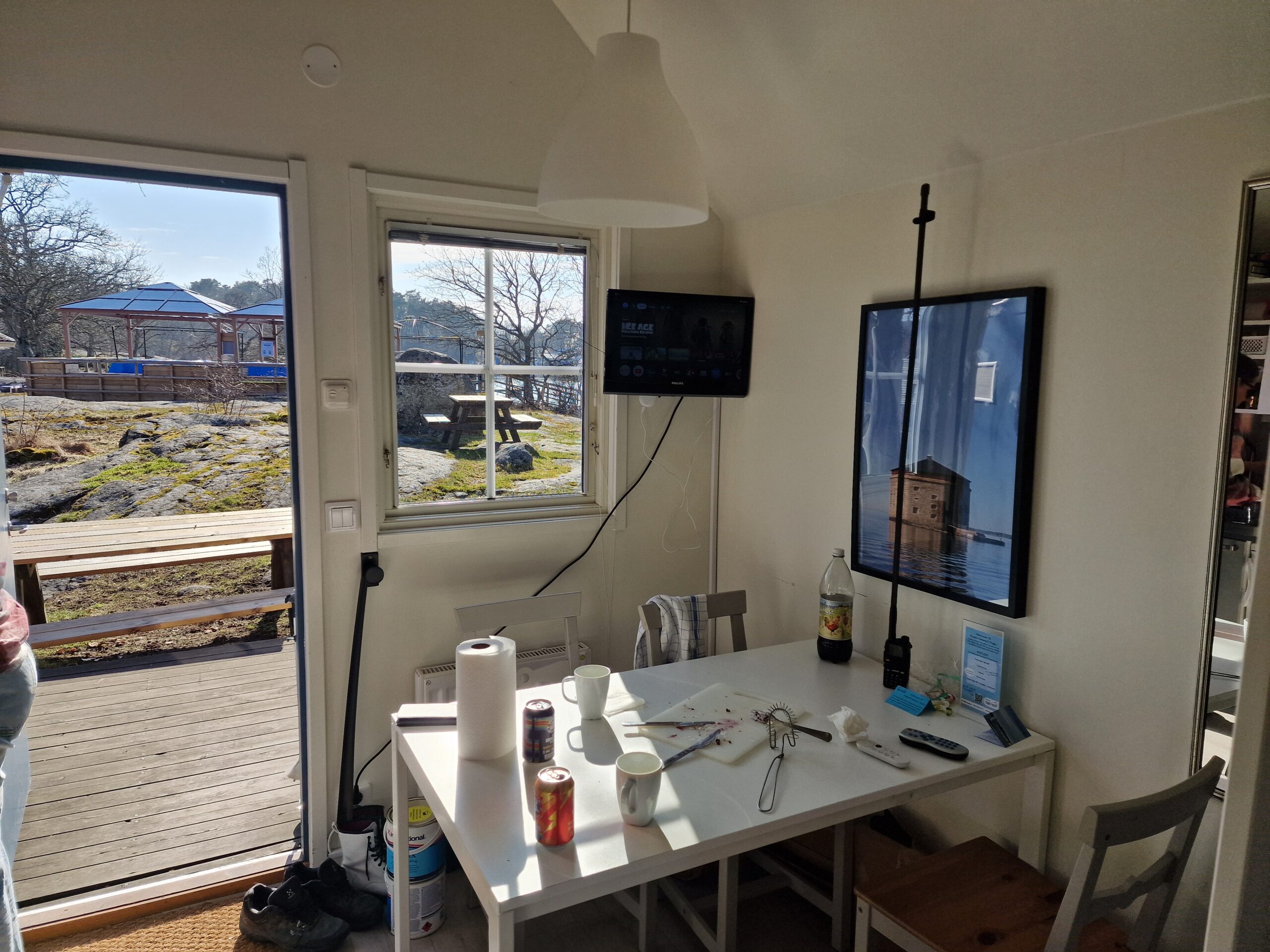 Torsdagen den 2 april, på Henrys tioårsdag, lastade vi bilen och släpet för att åka ner till Sommarro. Vi hyrde en stuga på Dragsö Camping med fin utsikt bort mot båten.