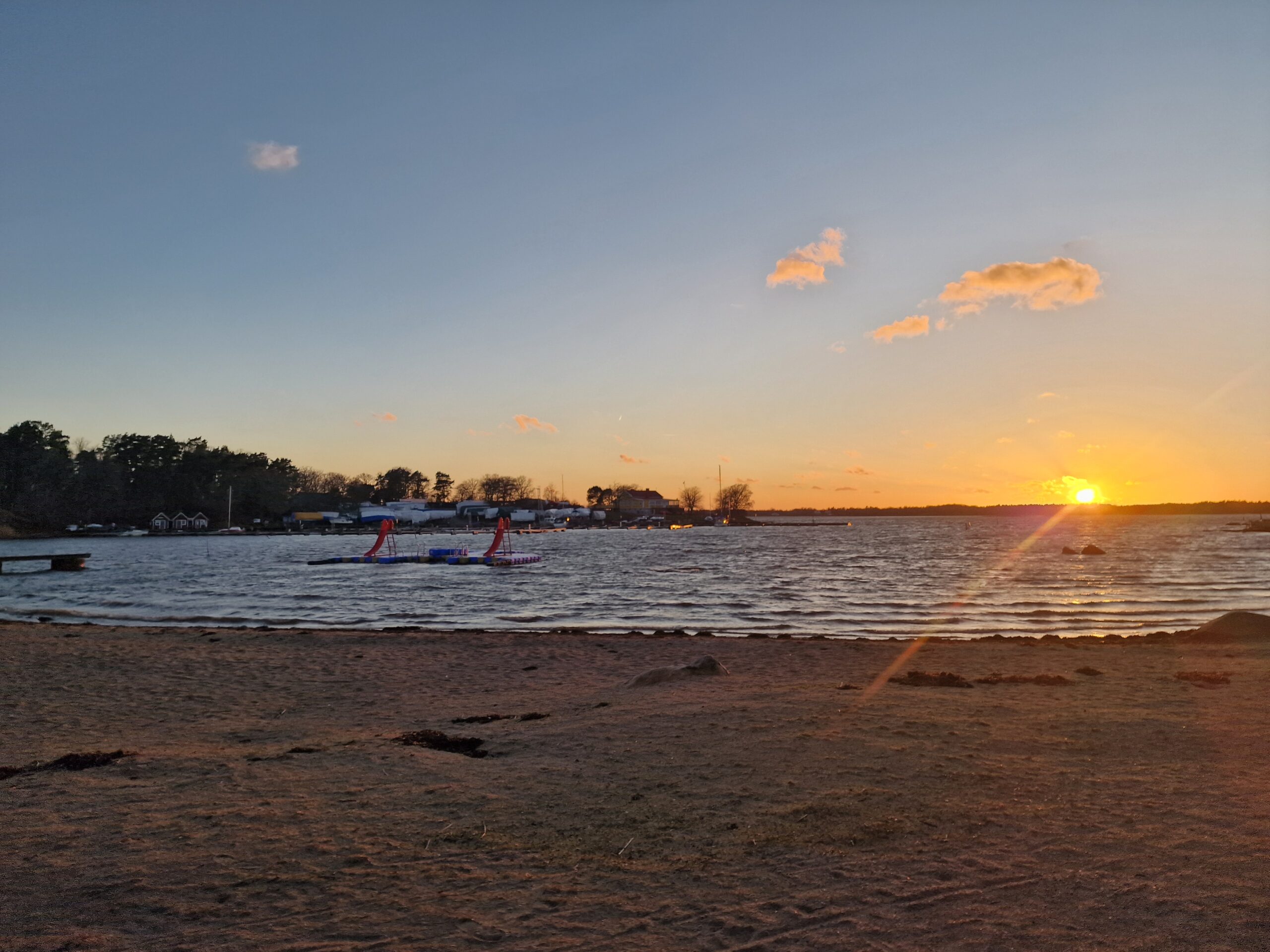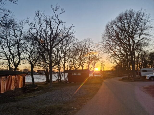 Dagen avslutades på bästa sätt med champagne på restaurangen vid Dragsö Camping, då Angela fyllde år 🎉