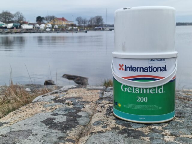 Söndagen ägnade vi åt att stryka fjärde och femte lagret epoxyfärg. Det femte och sista lagret var grått – samma kulör som det första.