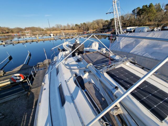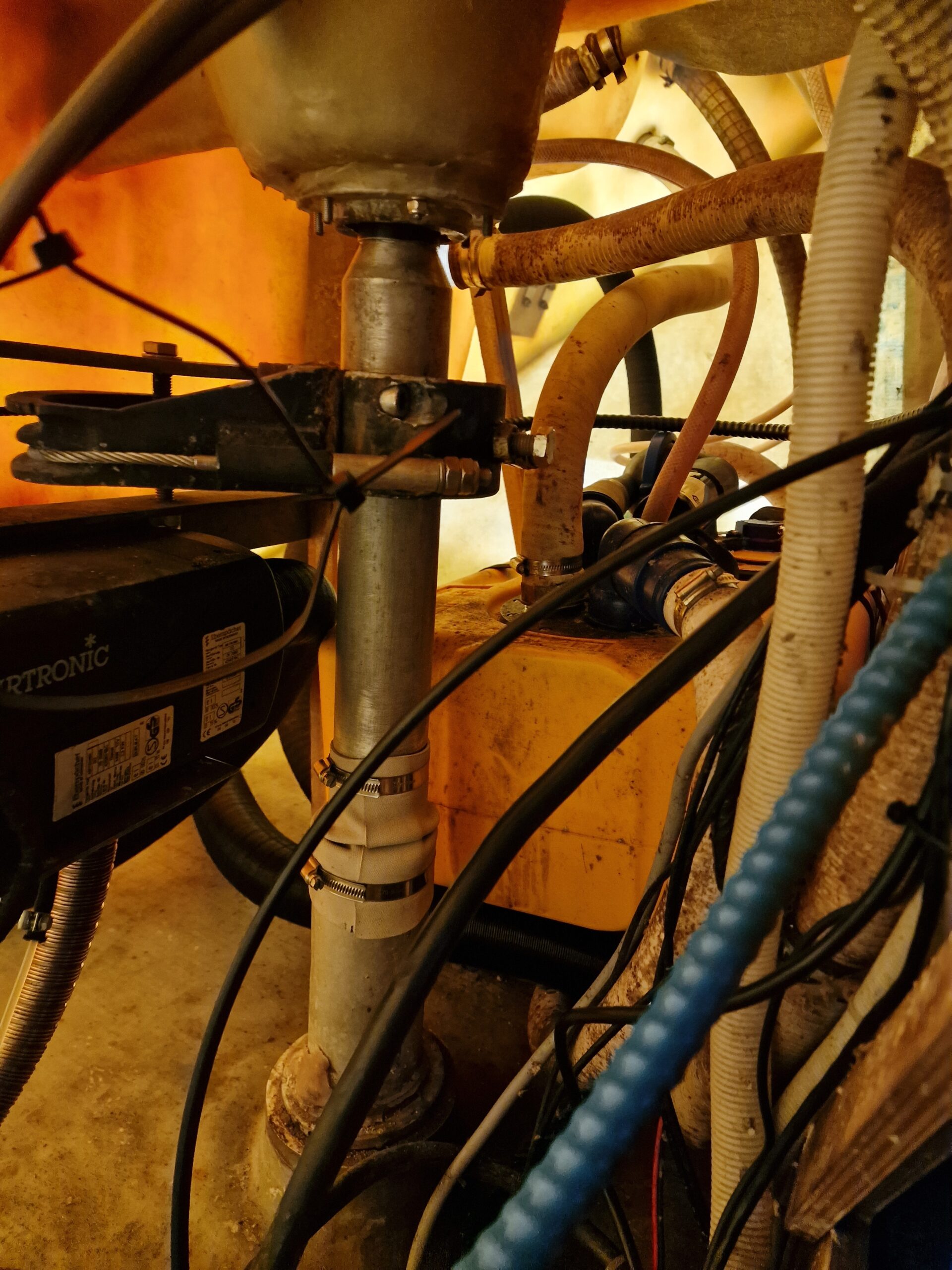 Jag justerade även roderstockens neoprenskydd enligt rekommendationerna. Små detaljer, men viktiga för helheten. När det var klart monterade jag tillbaka innertaket samtidigt som Angela gav hela båten en ordentlig tvätt.