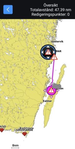 De sista distansen in mot Borgholm byggde sjön upp ordentligt. Vågorna kändes som att de närmade sig 2,5–3 meter, men vi satt torra och trygga bakom sprayhooden. Det är en skön känsla när båten bara går på, trots att havet visar musklerna.