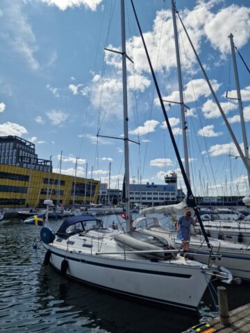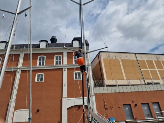Väl framme i Kalmar gästhamn fick vi direkt känna på vad sidvind innebär i praktiken. Sommarro skulle in rakt mot bryggan med boj i aktern – och vinden gjorde sitt bästa för att sätta oss på prov. Då lär man sig snabbt att handskar inte är någon överdrift när en tamp kan bränna rakt in i handen. Det är i sådana stunder man växer som besättning.