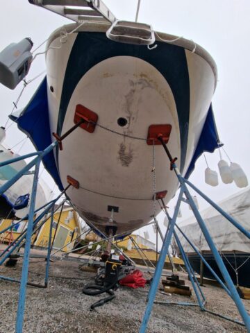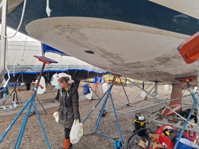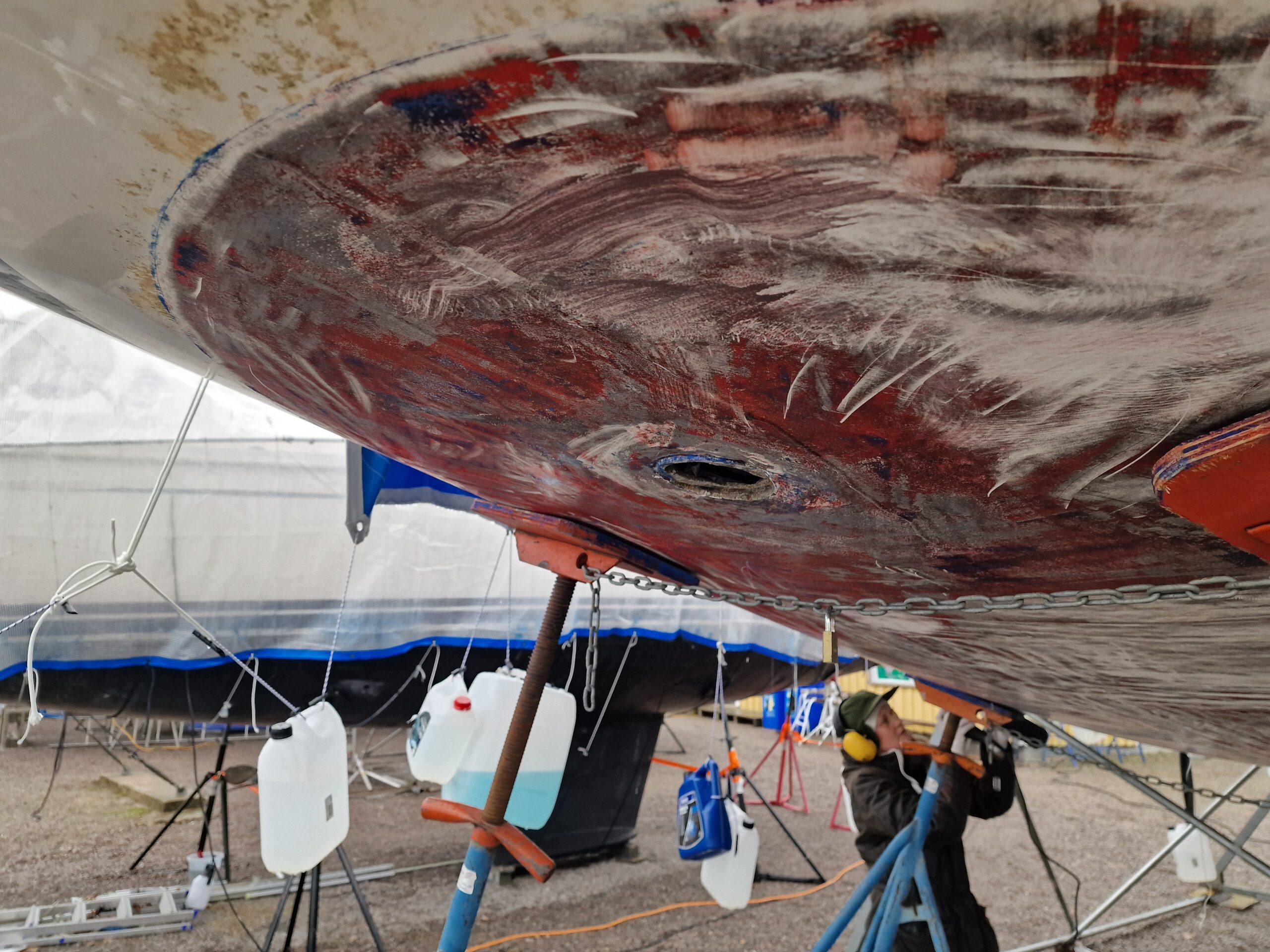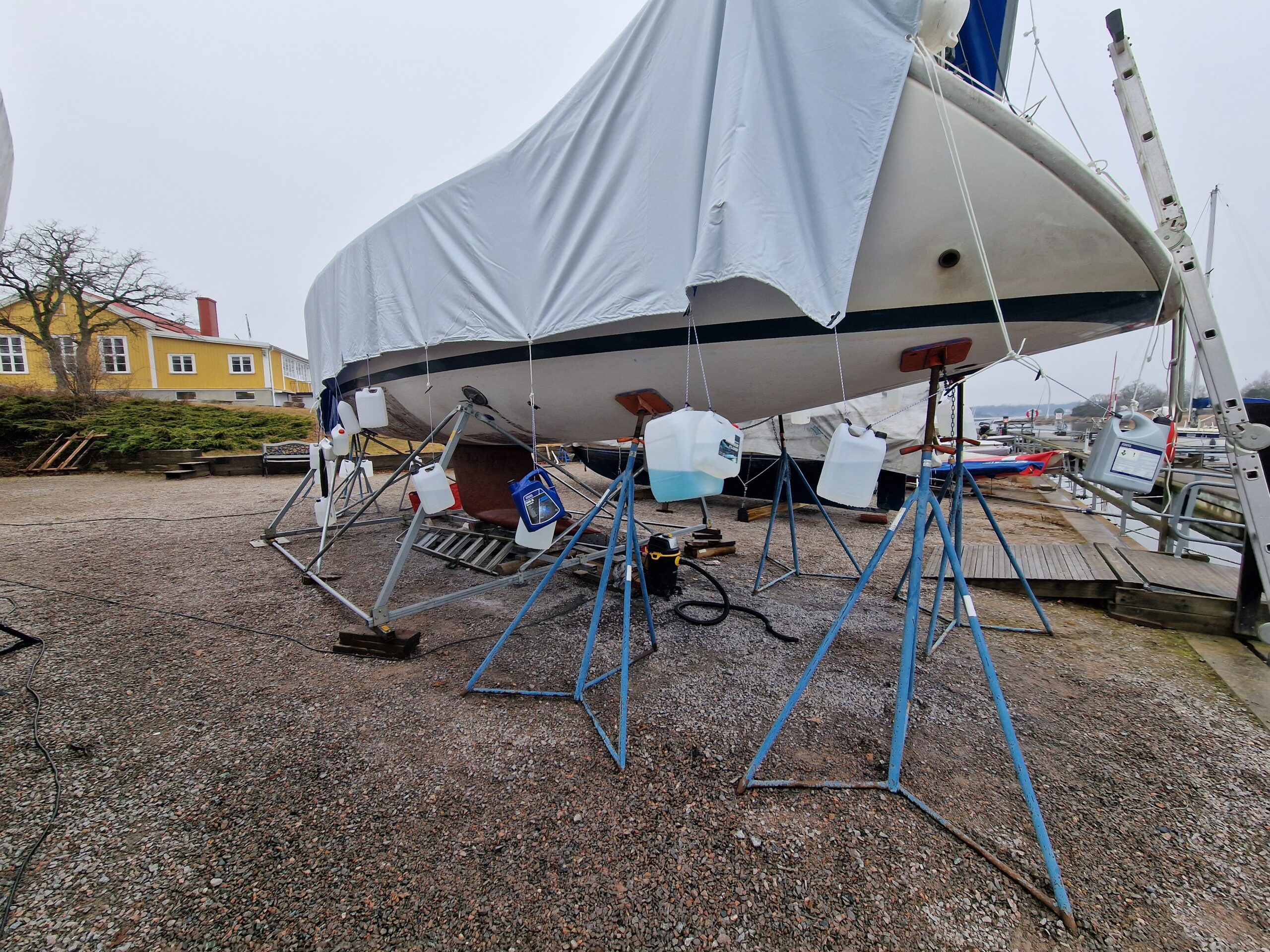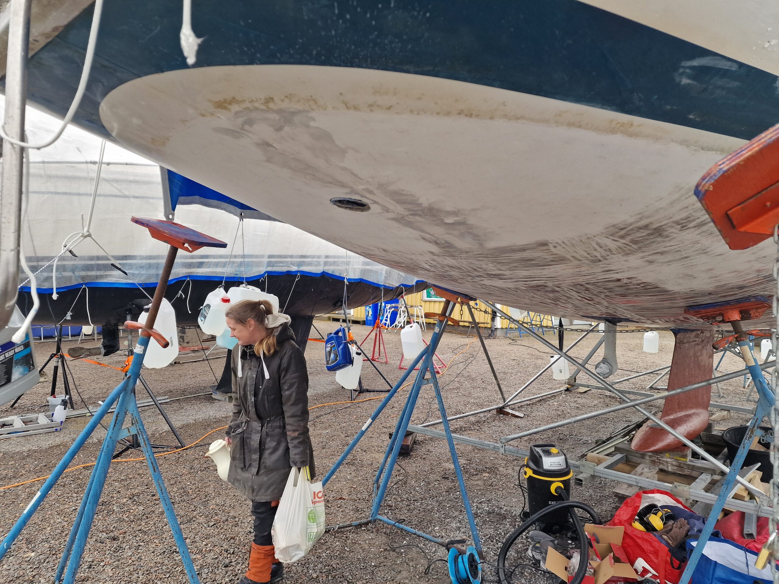 Vi började också slipa rodret lite här hemma innan vi åkte ner, så dagens arbete – nu på söndagen – blir att fortsätta med det.