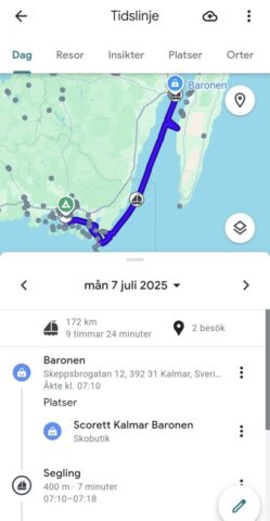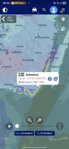 Att lägga till på Dragsö kändes speciellt. Vår plats mäter 4 x 7 meter och Sommarro är ungefär 11 meter lång och 3,70 bred – det är lite annat än när Ingalill låg där, med sina 5,75 meter på längden och 2,41 i bredd. Det blev plötsligt väldigt tydligt hur mycket båt vi faktiskt har nu. Men hon gled in fint, och det kändes stort att för första gången lägga till hemma med Sommarro.