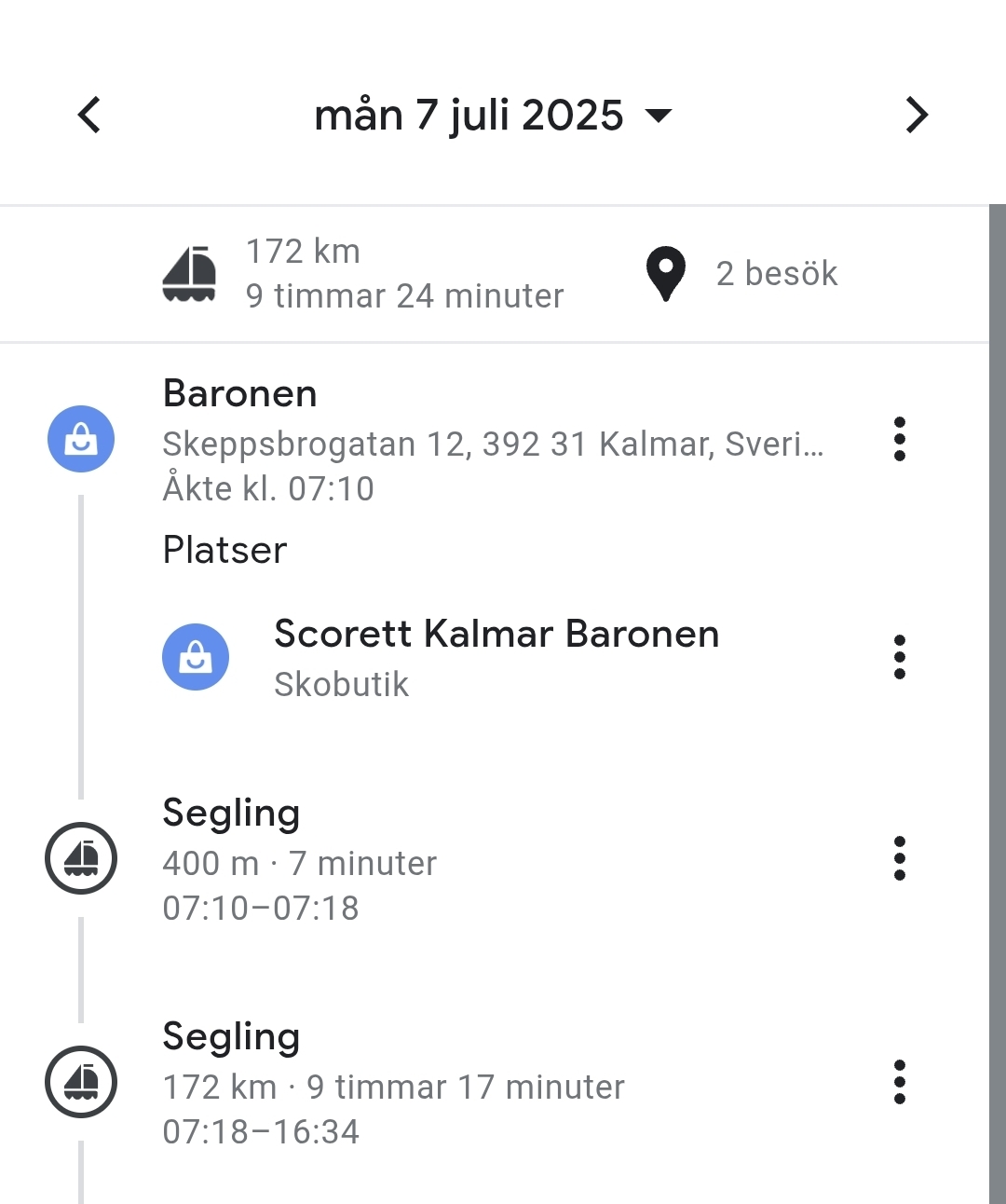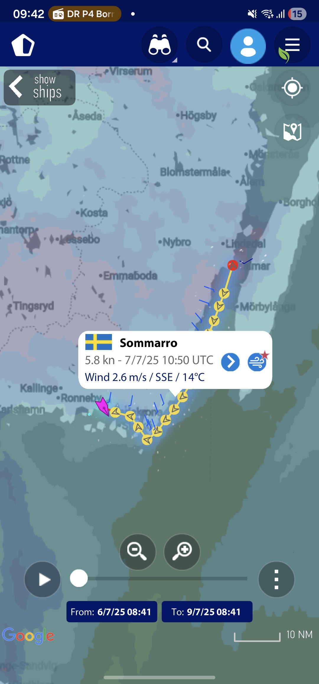 Ungefär klockan sju på morgonen kastade vi loss från Kalmar och satte kurs mot Karlskrona. En dagssegling på cirka 55 distans väntade – hem till Karlskrona Segelsällskap på Dragsö. Totalt tog sträckan runt 9,5 timmar.