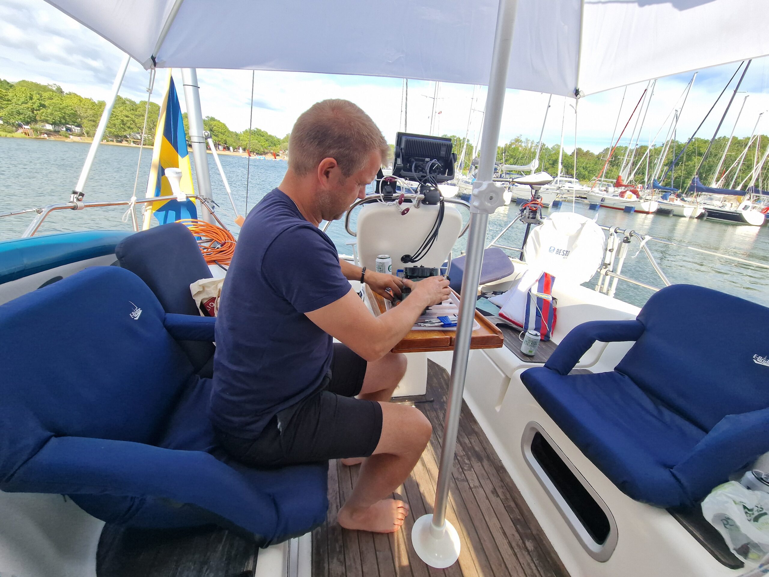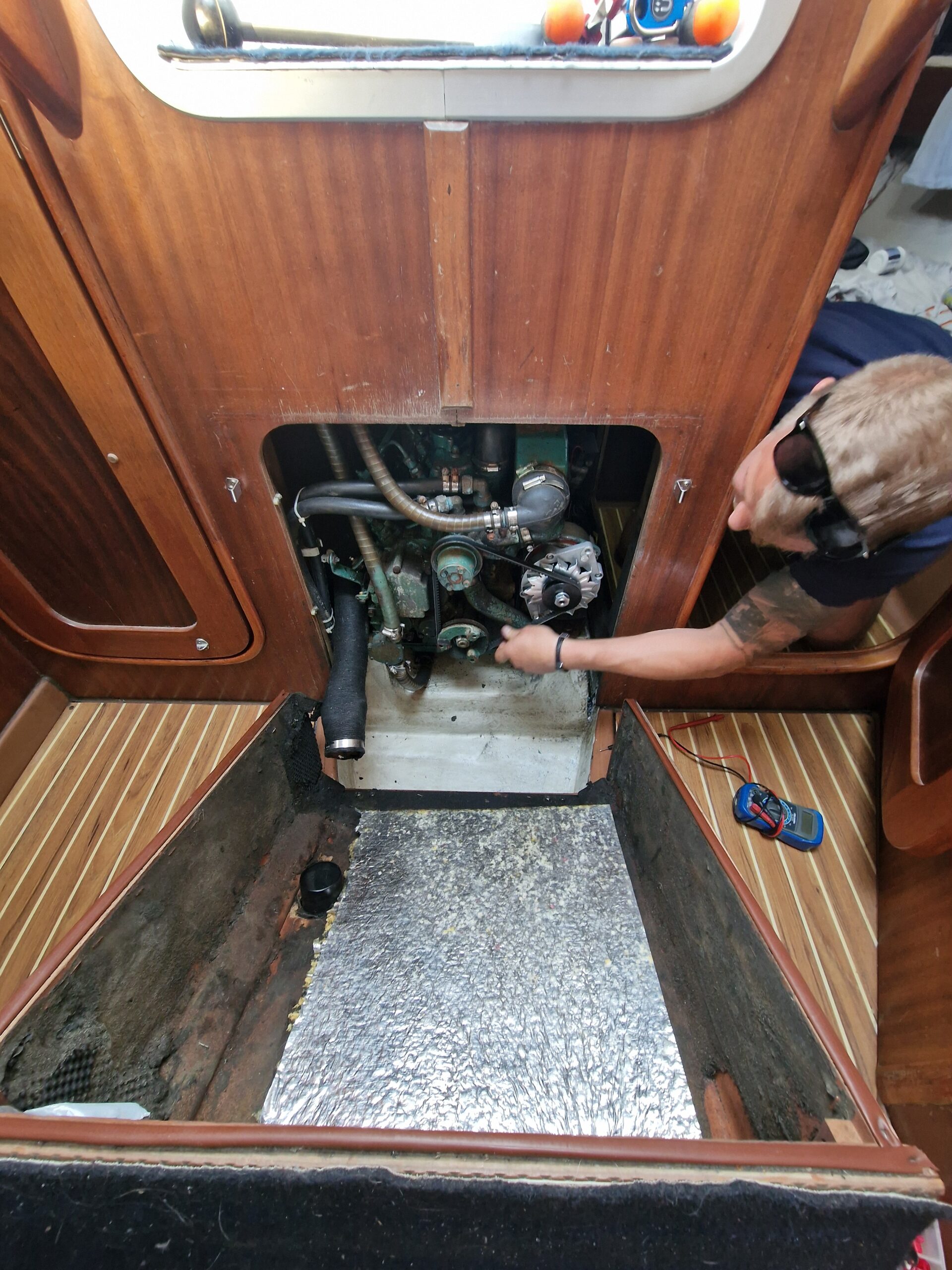 Under tiden dök CF ner i motorrummet tillsammans med mig och hjälpte till att byta både generator och varvräknare – vilket lyft det blev!