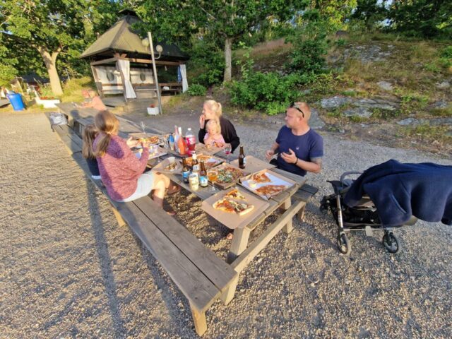 Kvällen rundades av med grillmat och kalla öl i sittbrunnen. En riktigt härlig dag, toppad med en vacker solnedgång över vattnet.