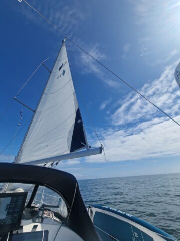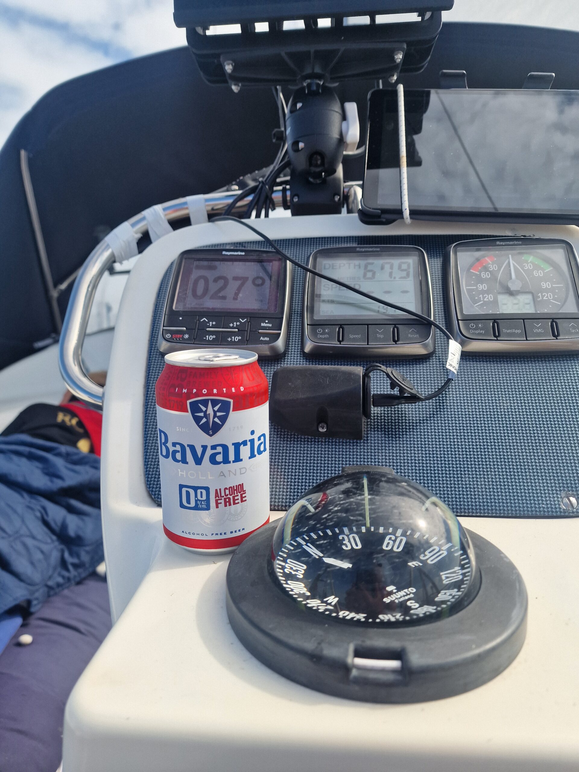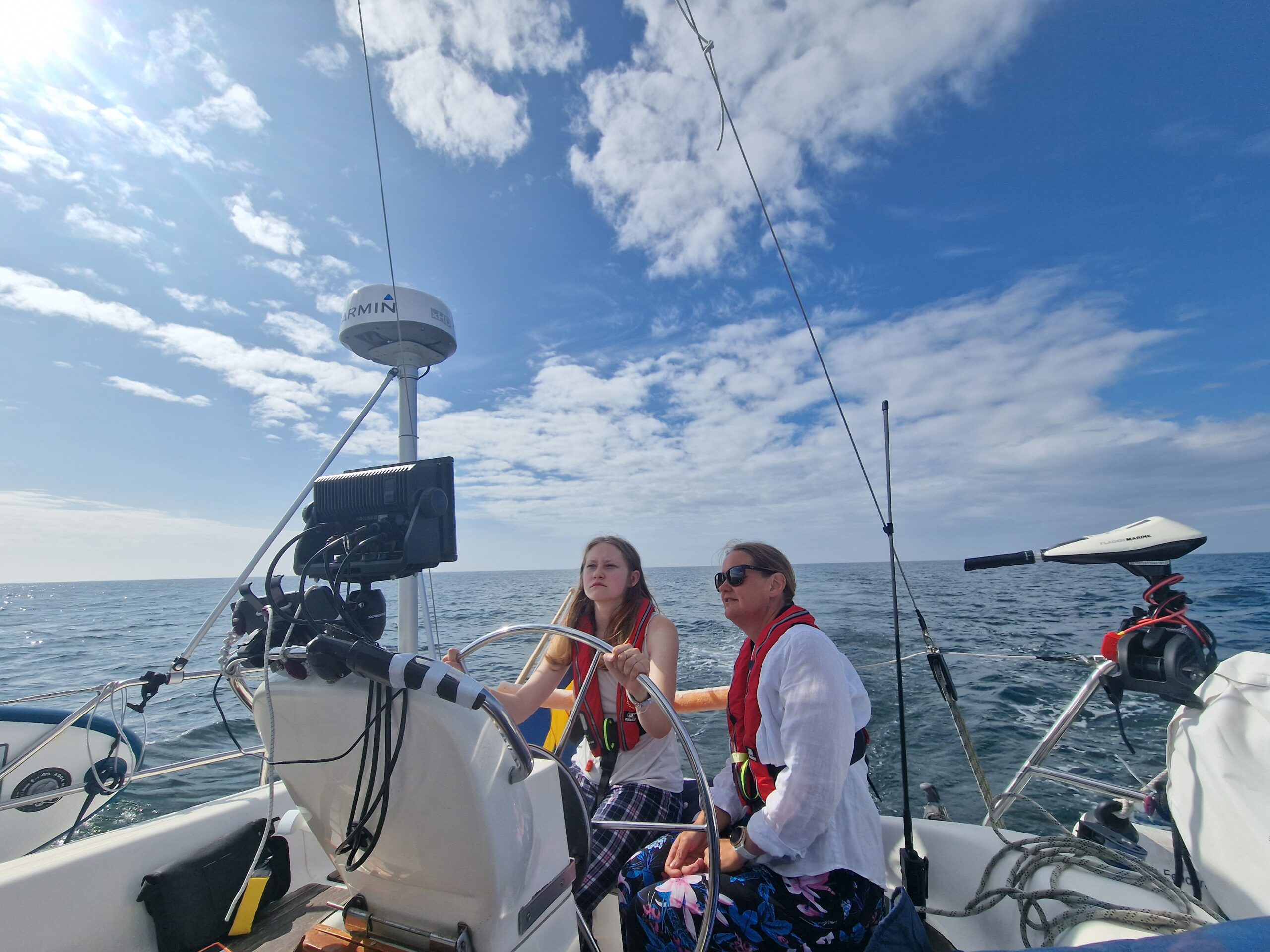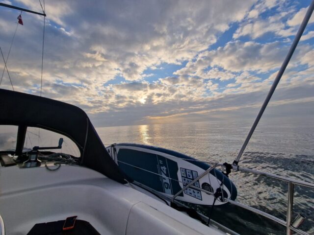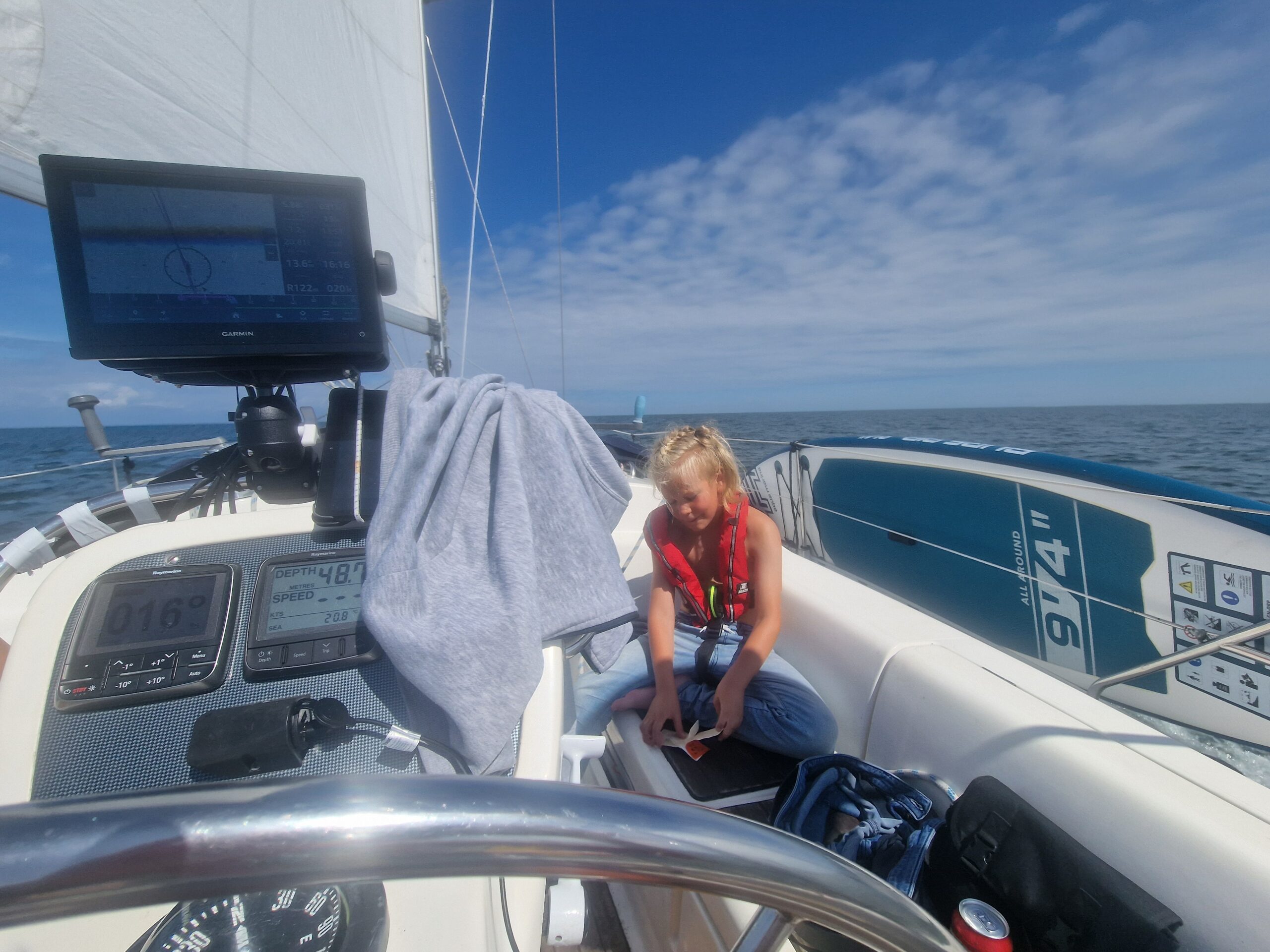 Överfarten hem tog ungefär elva timmar och vi avverkade cirka 61 distans. När vi väl kastat loss och fått ordning på allt turades vi om att vila en stund. Resten av dagen fylldes av frukost, lunch, middag och eftermiddagsfika – och till och med lite gitarrträning i sittbrunnen. Det är något speciellt med de där långa passen till havs när tiden liksom löses upp och man bara är.